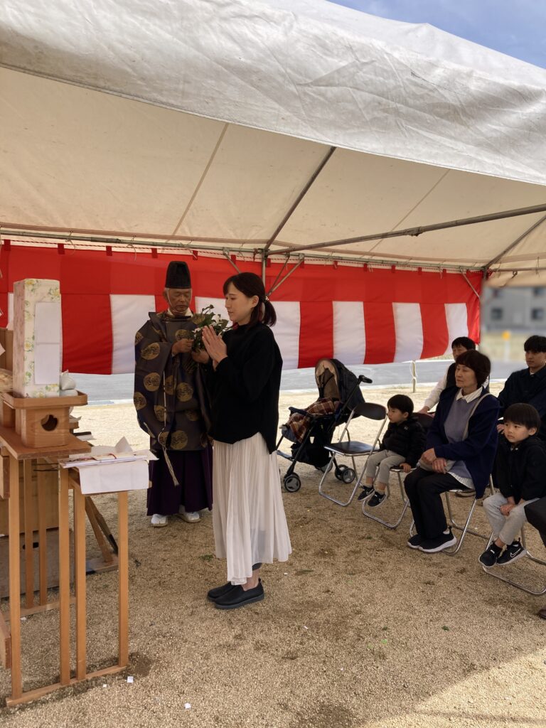 工事の安全祈願とお施主様が永く暮らせますようにと神様にお祈りします。