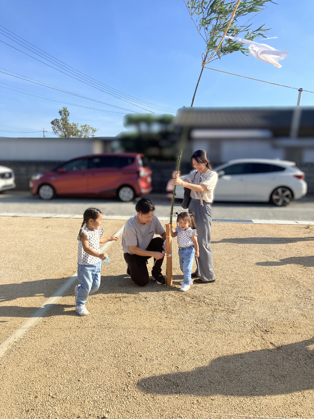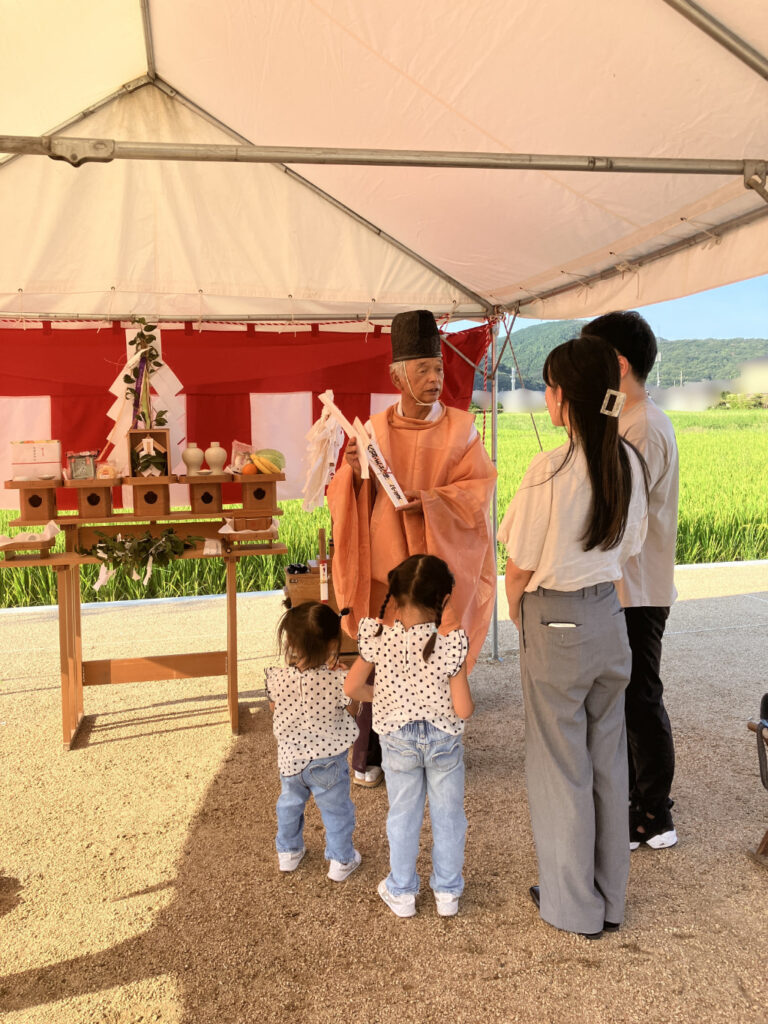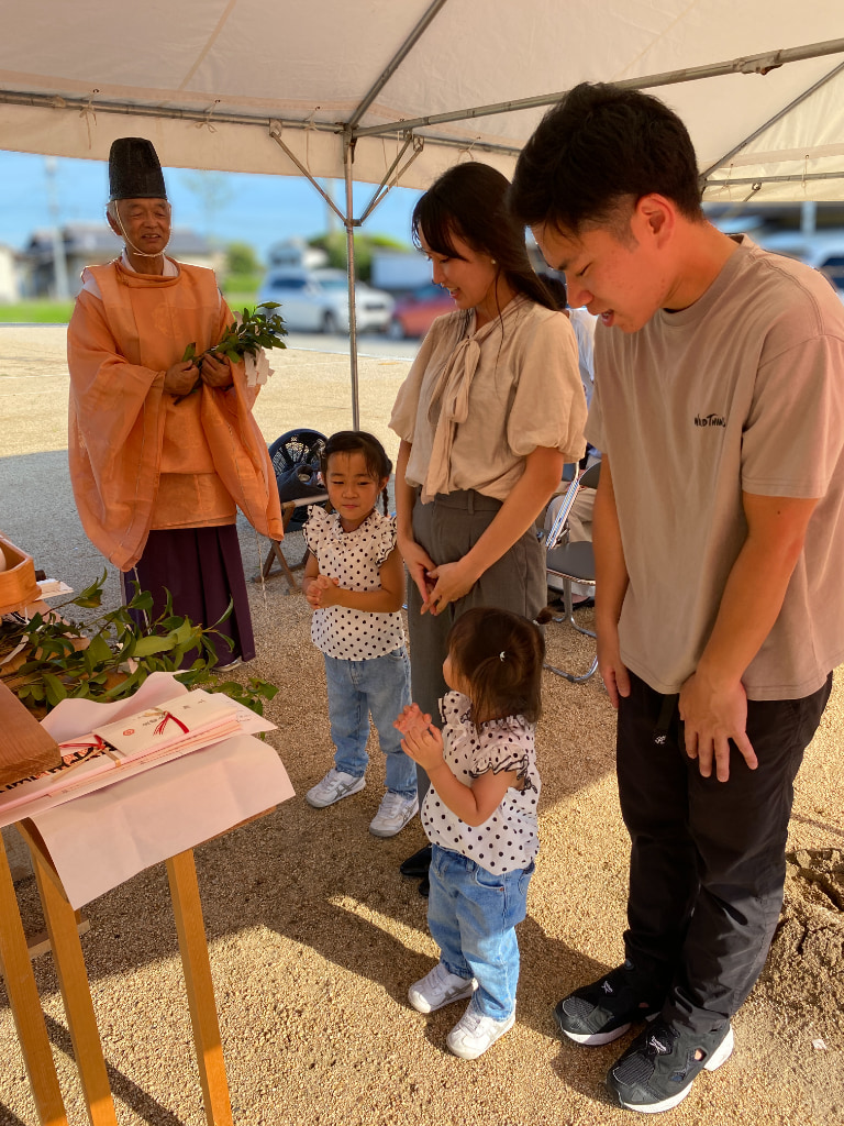お子様も一緒に「良い家が建ちますように」とお祈りをして頂きました!かわいいですね😊