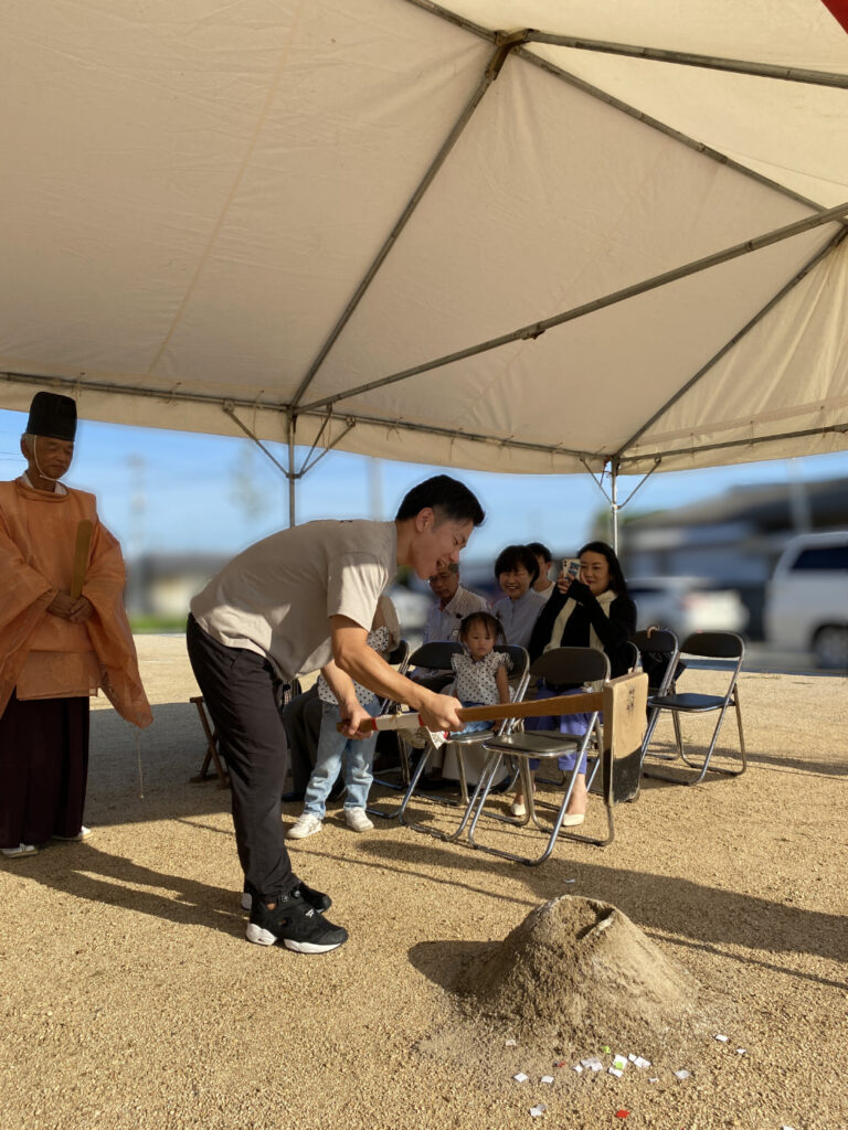 ご夫婦ともに素晴らしい掛け声で、笑顔あふれる楽しい地鎮祭でした!