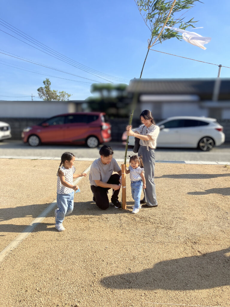 お施主様に竹を立てていただき、工事の安全祈願の始まりです!