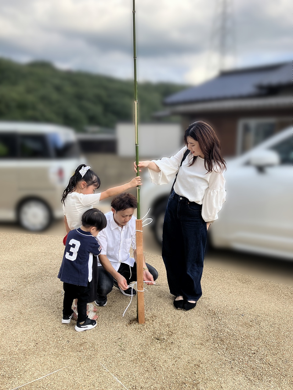 まず初めに、お施主様に竹を立てて頂きます🍃