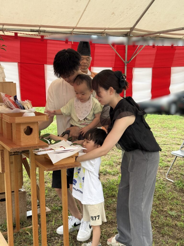 榊(さかき)を神様にお供えして工事の安全やご家族の幸せを祈る儀式です。