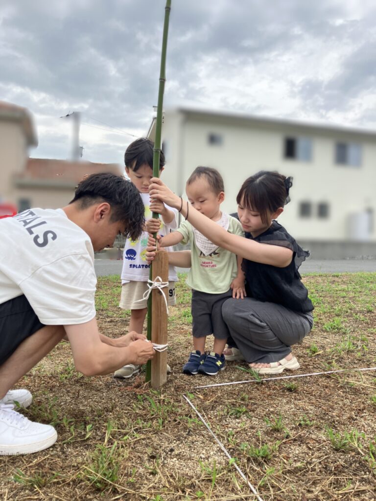 現地に来ていただいて、まず初めにご家族協力して竹を立てていただきました!
