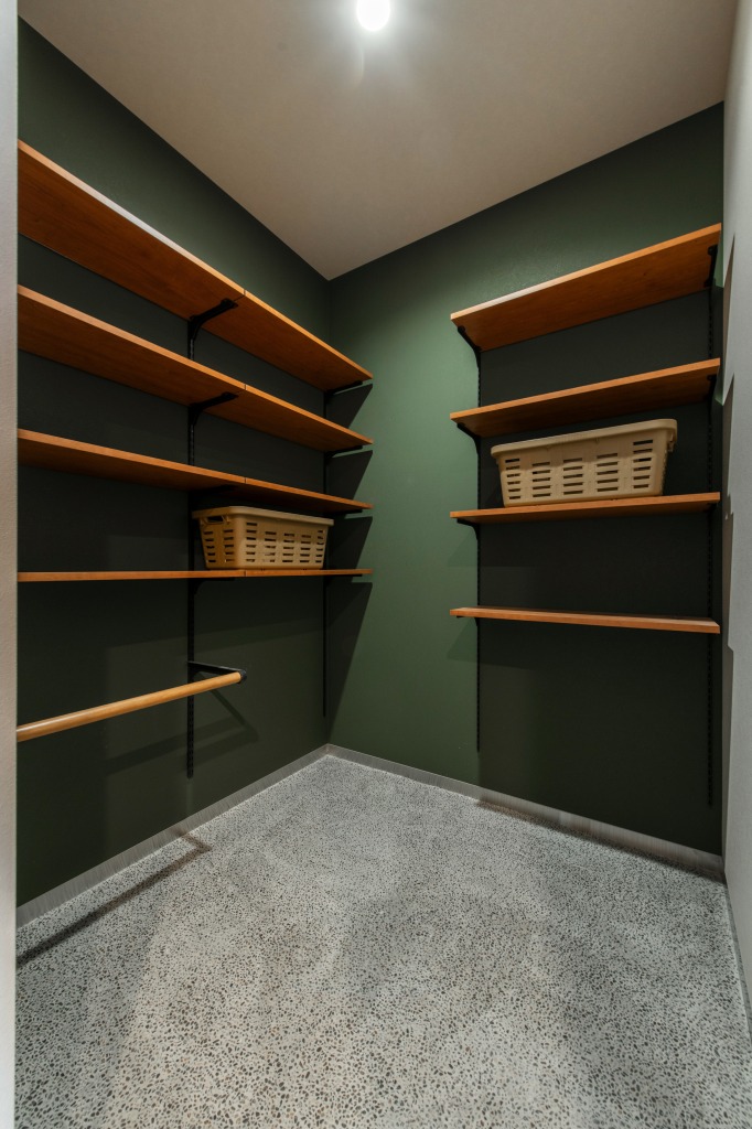壁紙はご主人の希望で深緑を採用。木目との相性も抜群です👍