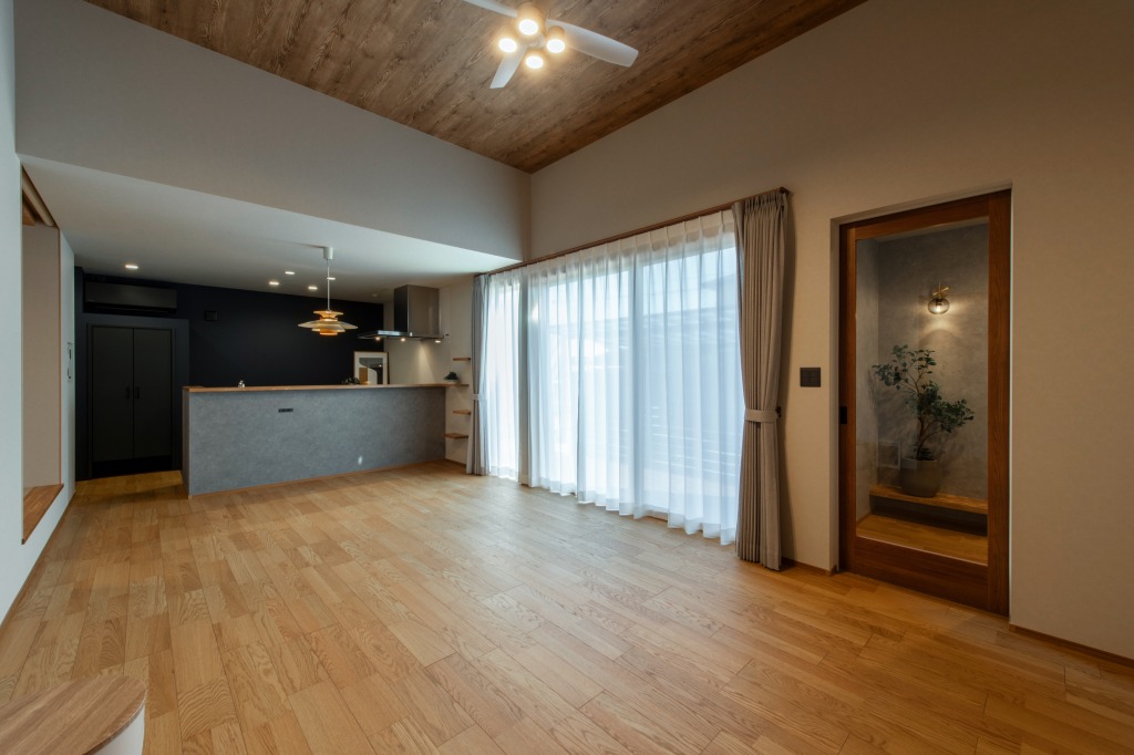 LDKはリビングの天井を思い切って高く上げ、空間全体がより広々と感じられるように設計。