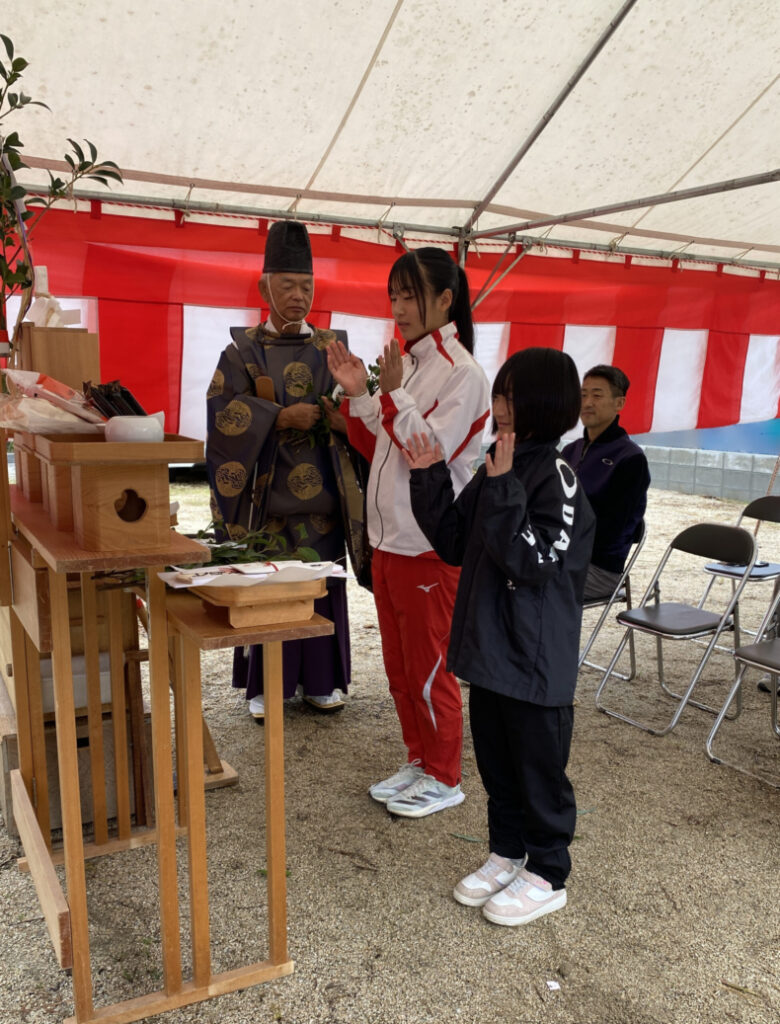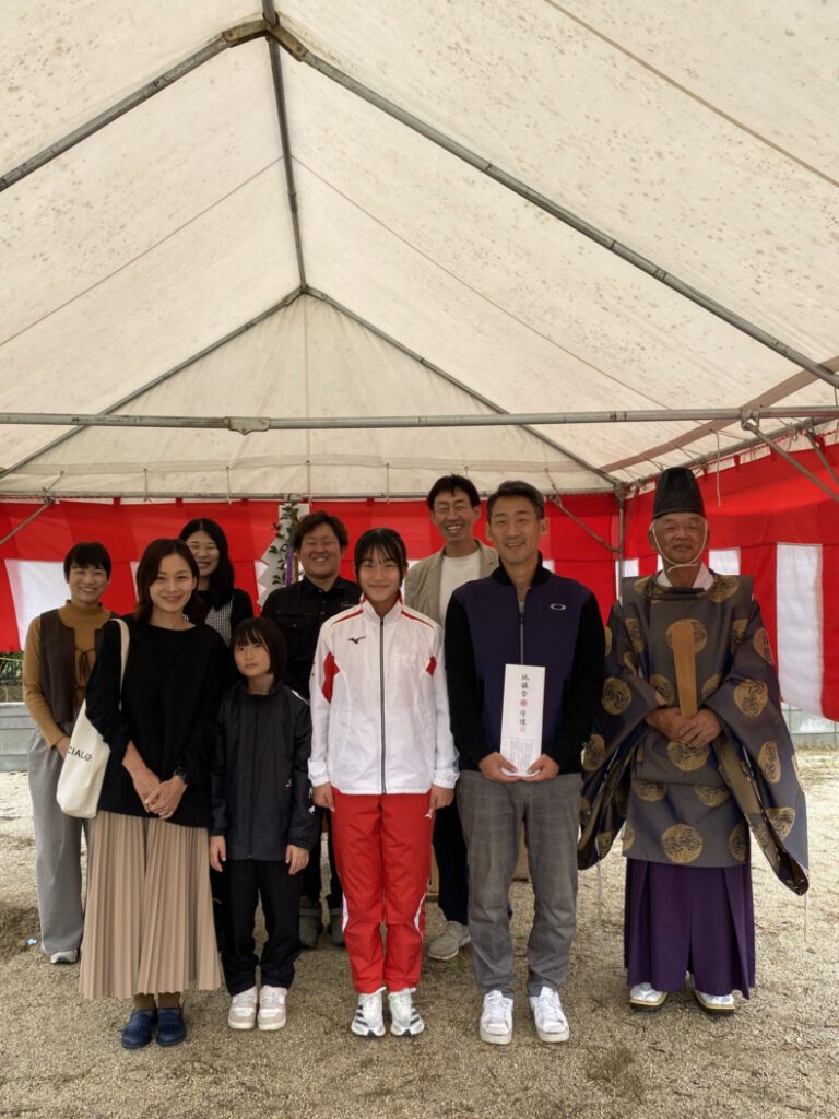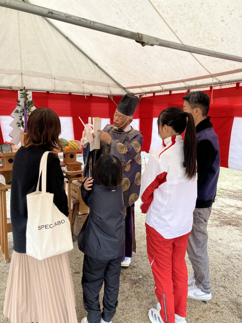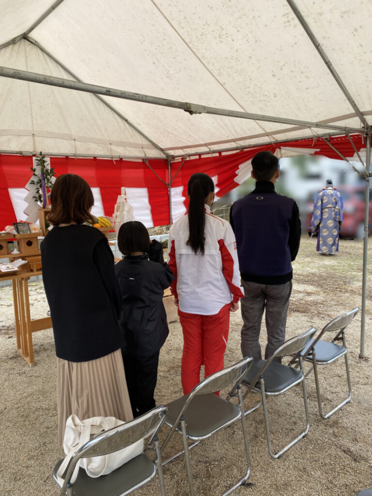 お施主様に続いて、担当スタッフも、工事の安全とご家族の繁栄をお祈りさせていただきました。