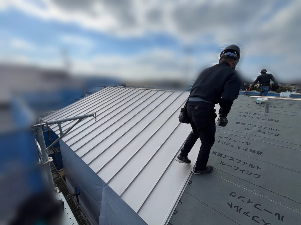 休憩後も順調に工事は進み、屋根の防水処理を終えて作業完了!