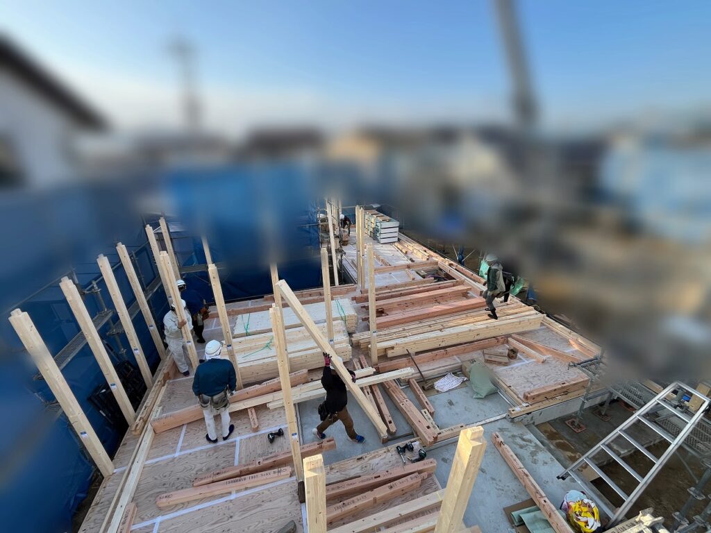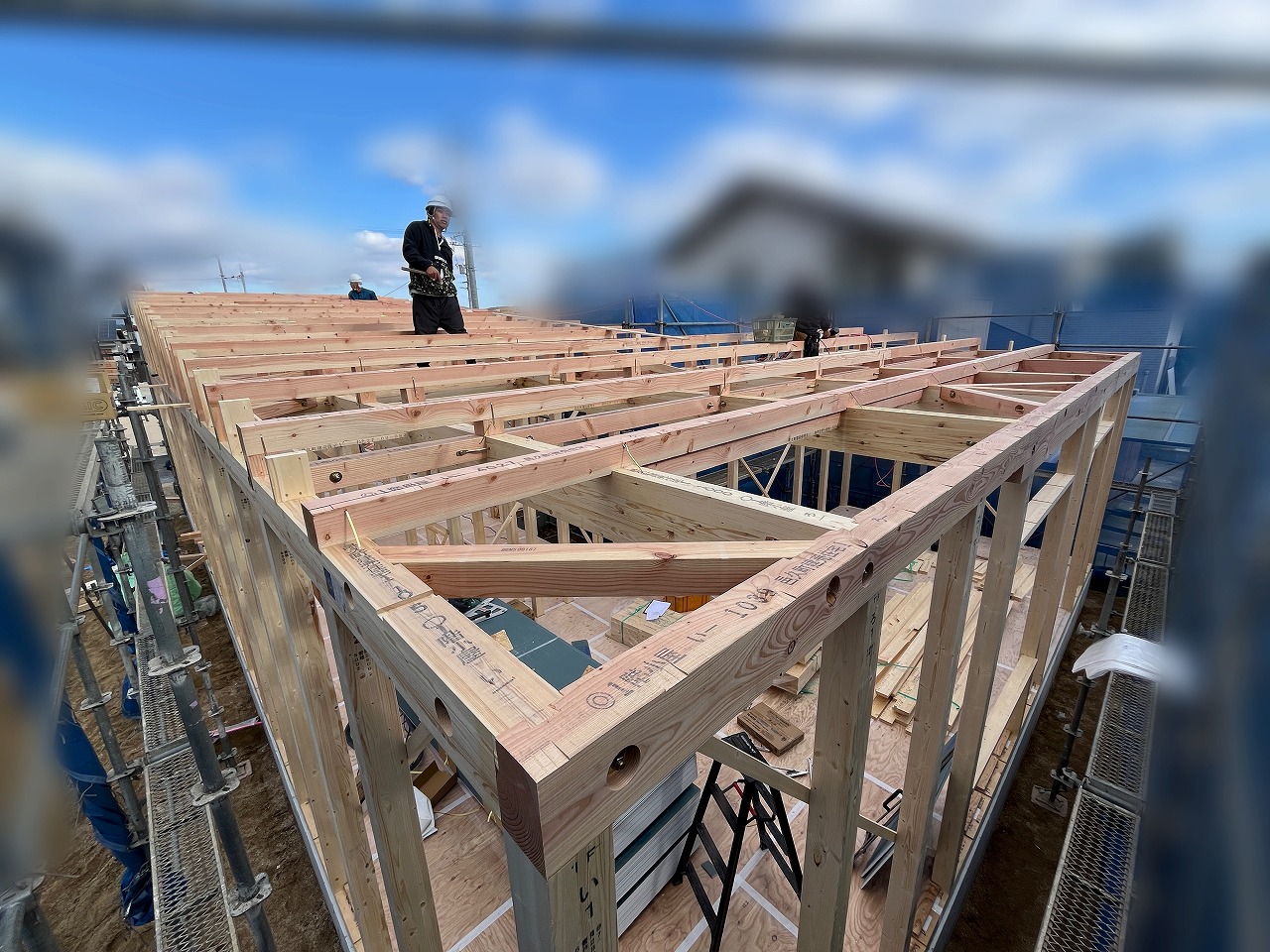 工事も滞りなく進み、無事に棟上げが完了しました!