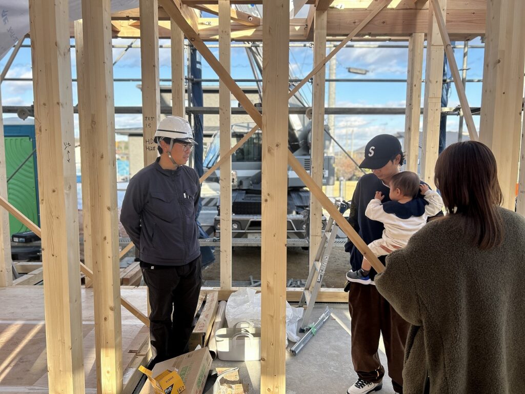 作業の様子をご覧になっていたHI様も、柱や梁が組み上がっていくスピードに驚かれていました。