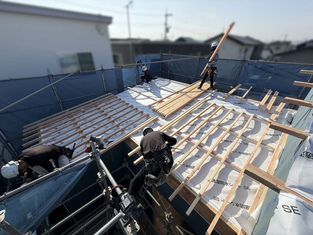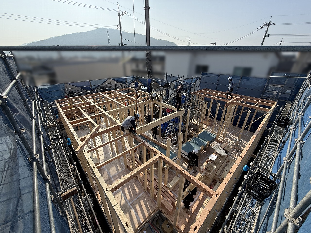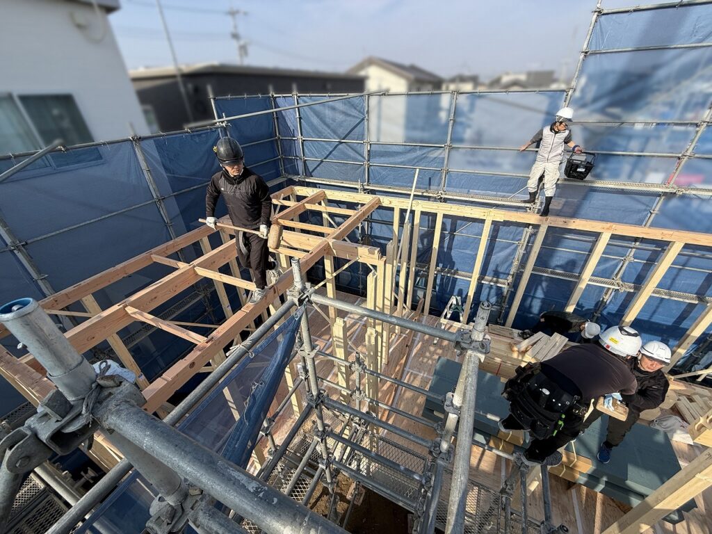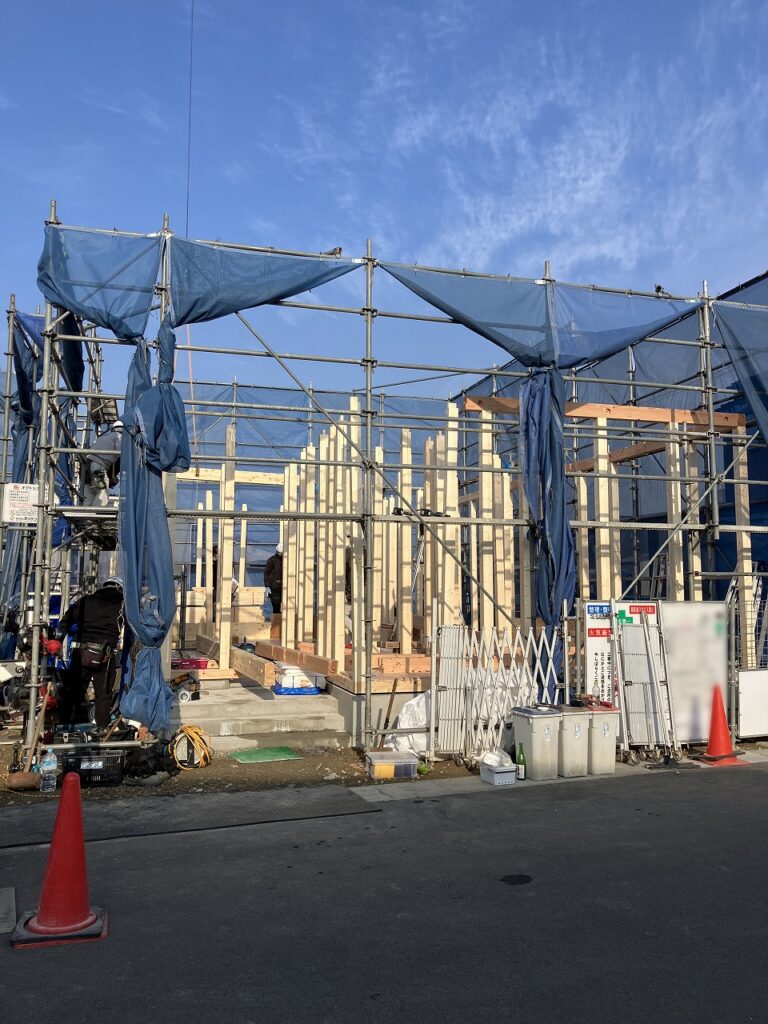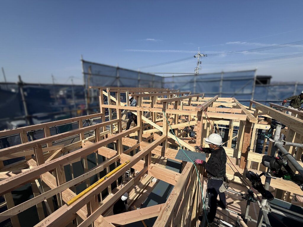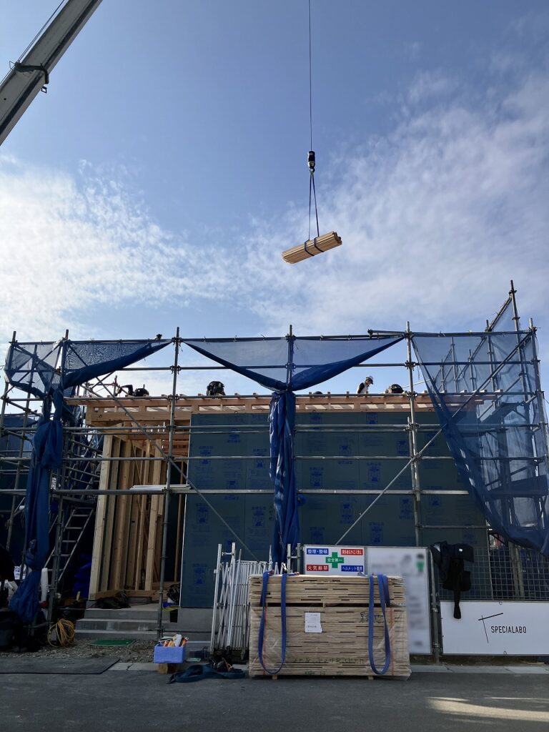 青空が広がる気持ちの良い一日、瀬戸内市長船町のY様邸の上棟を迎えました!