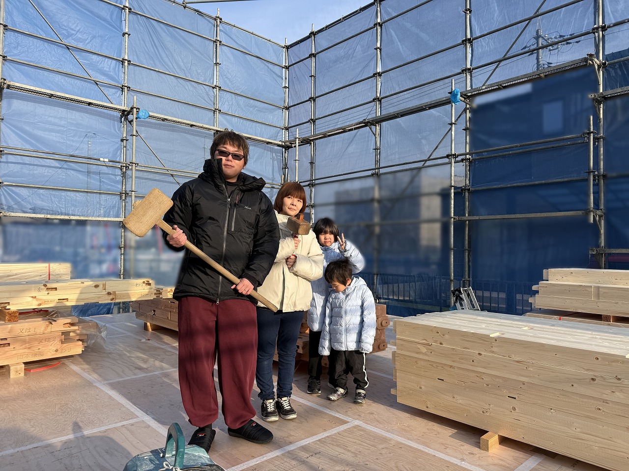 新しいお家への期待を胸に木槌を持って記念撮影をし、いよいよ始まります!
