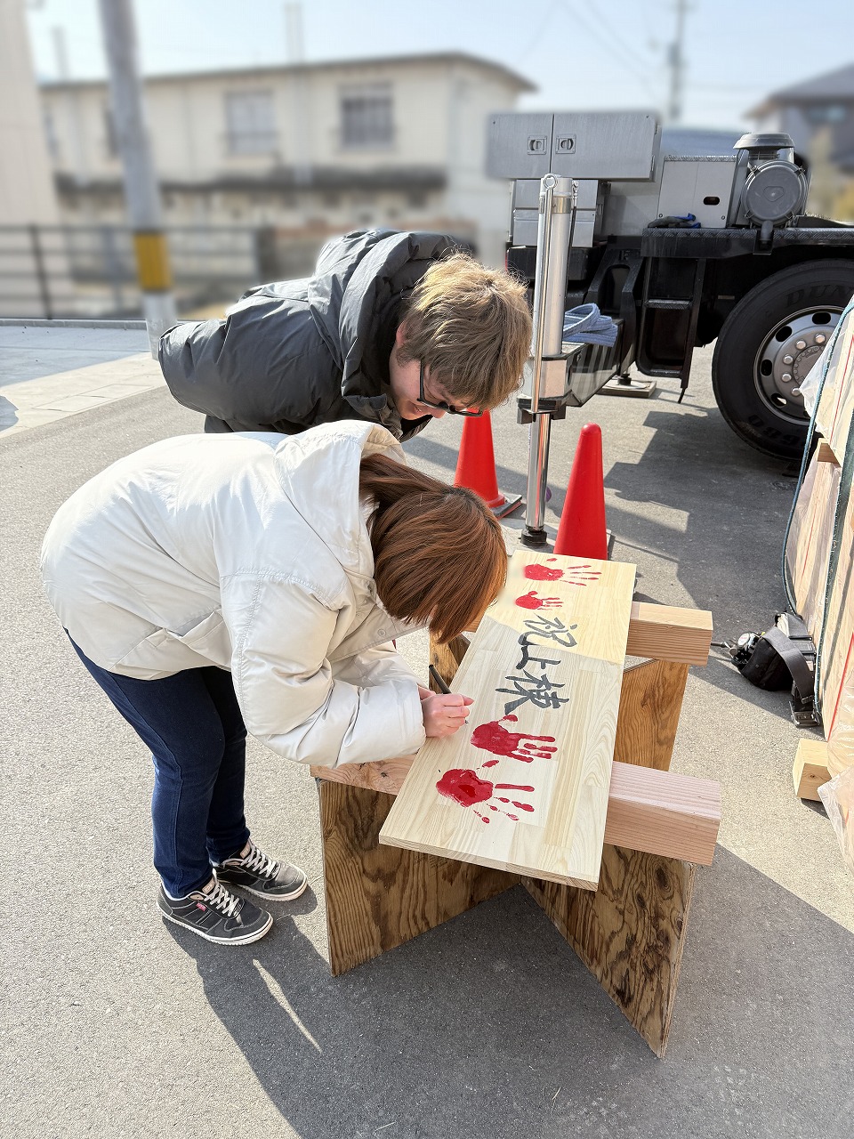 大工さんの休憩時間に、SPECIALABO恒例の手形式を行いました✋㊗️