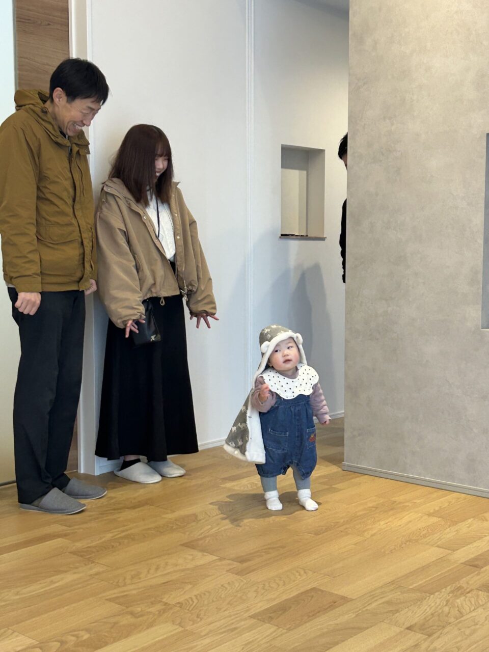 完成したお家を見るのは初めてということで、ご家族そろって中をご見学いただきました。