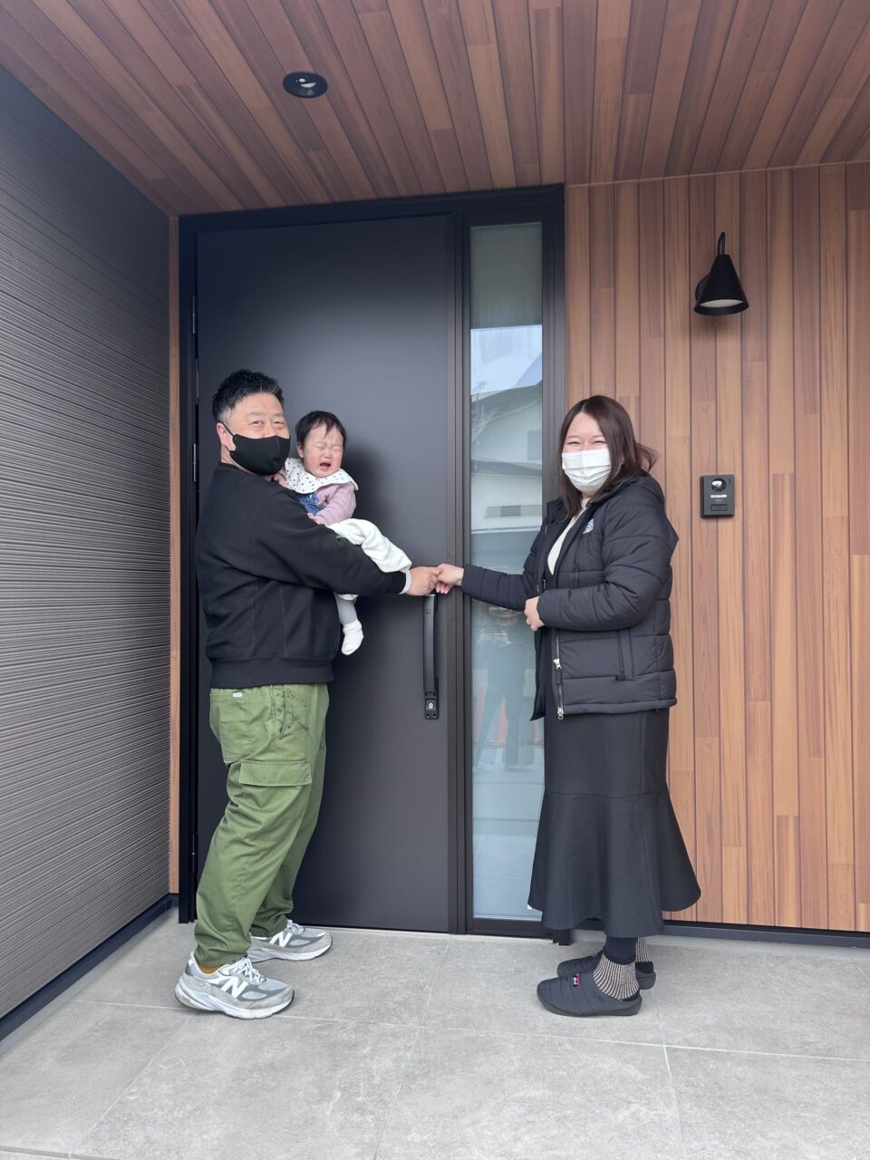 玄関ドアの前で記念撮影📸