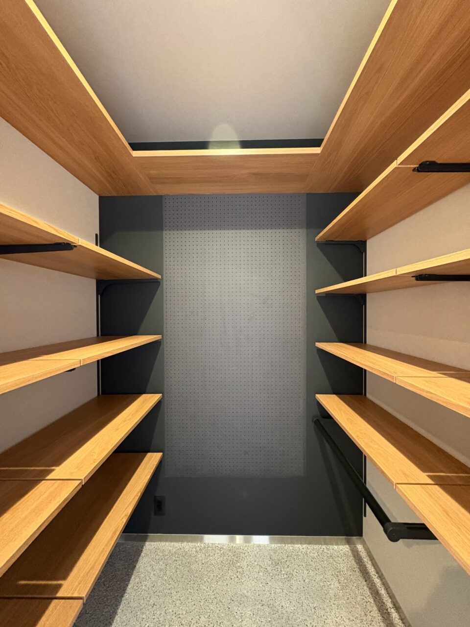 コの字に設置した固定棚は、スニーカーの空き箱を保管するスペースに!