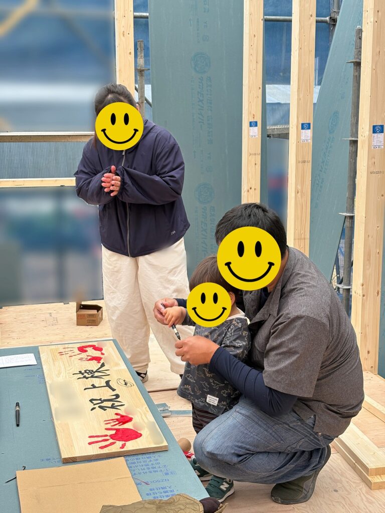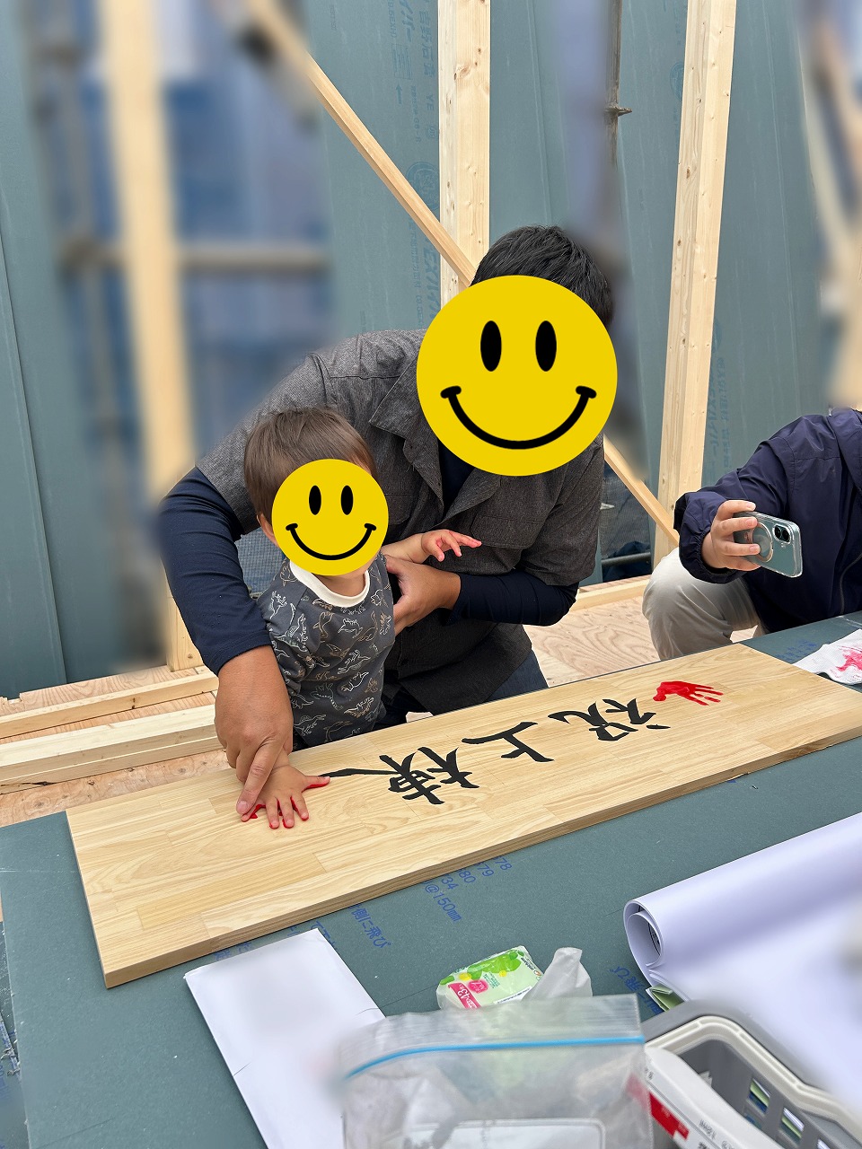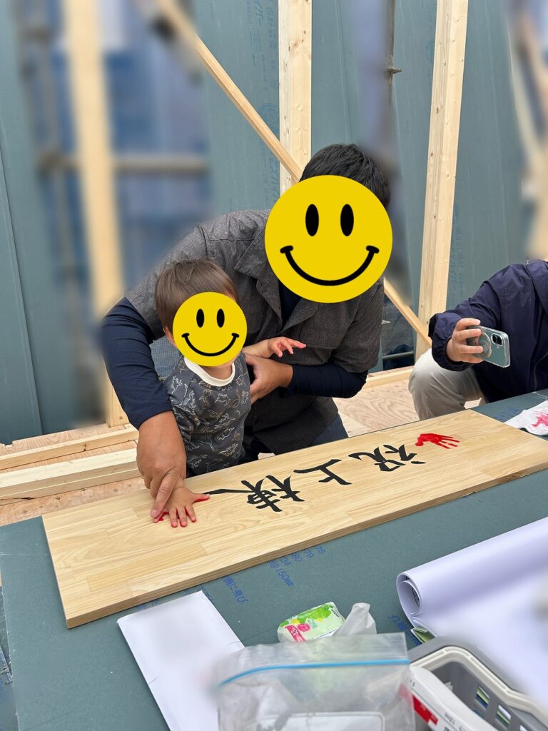 手形の板は屋根裏に括りつけて、T様の特別なお家という証になります!!