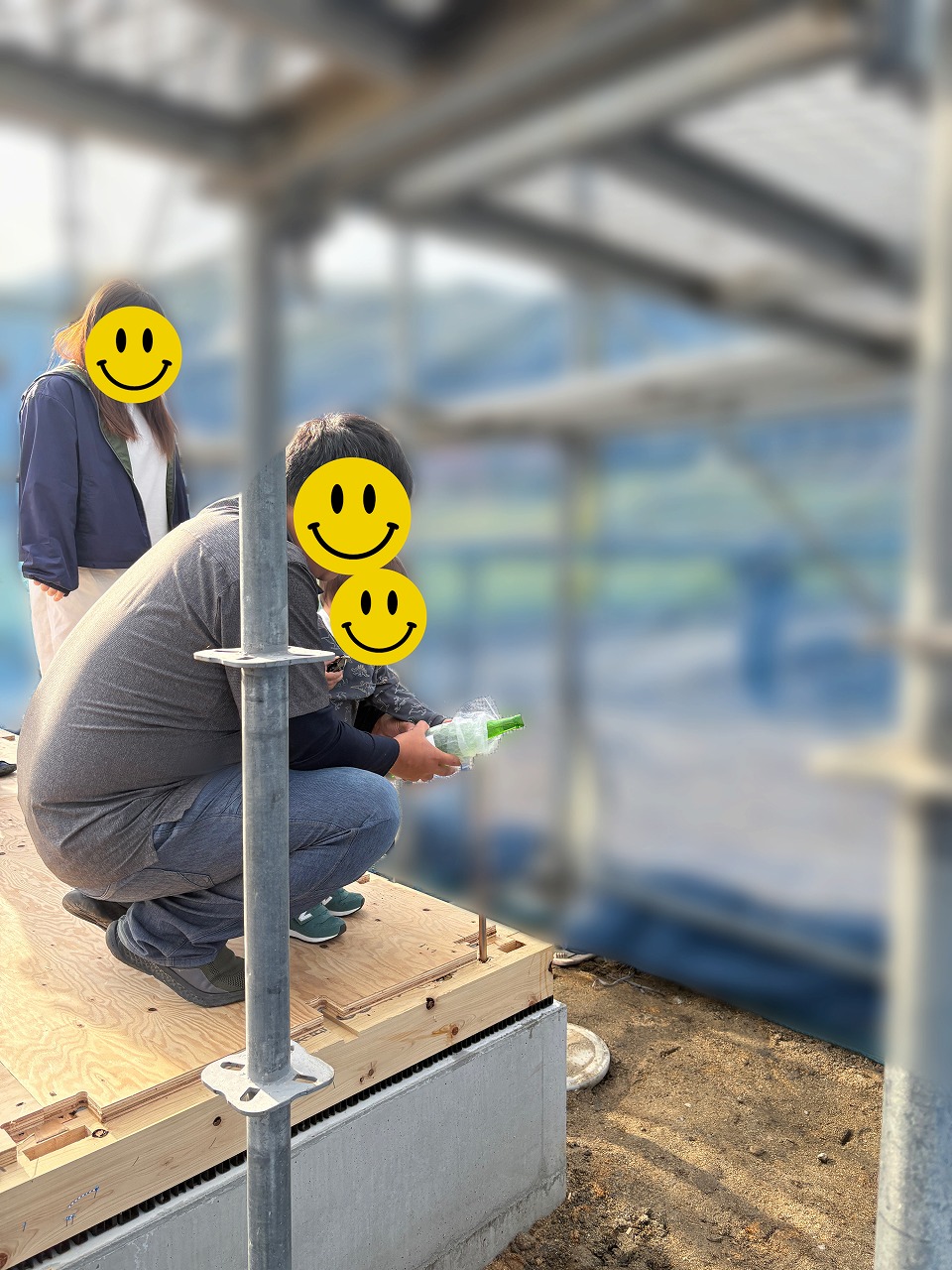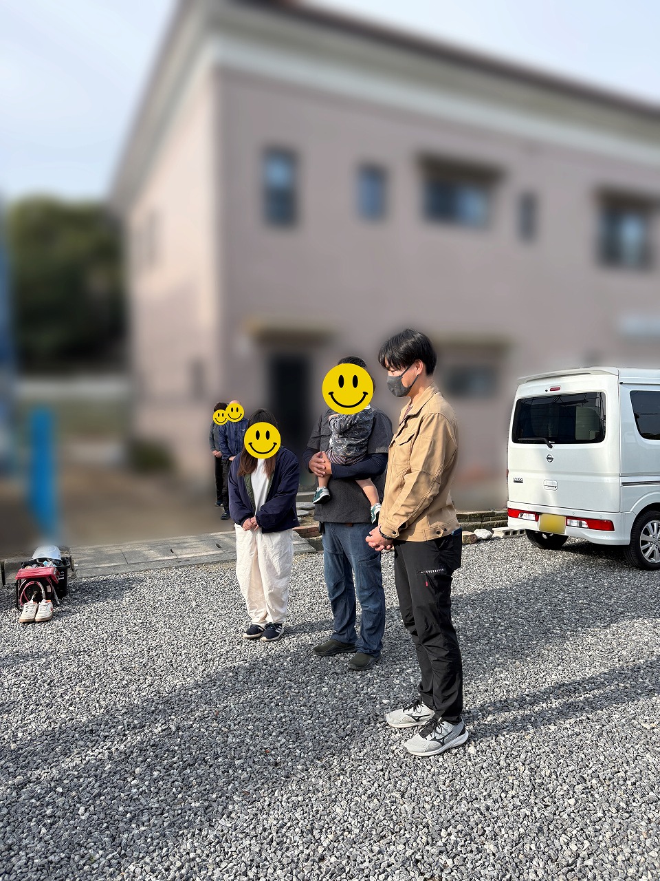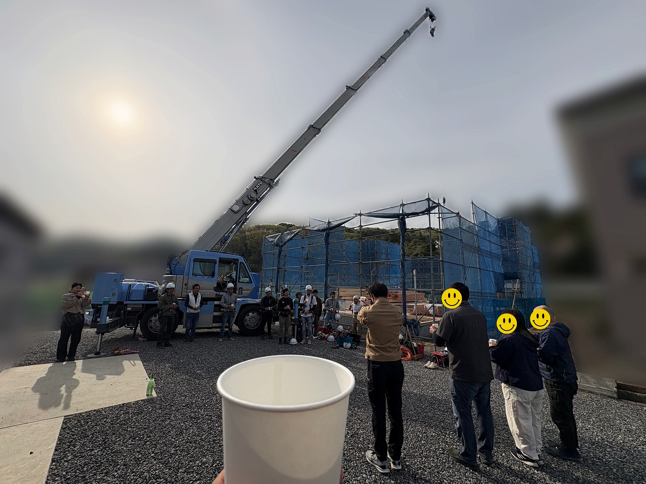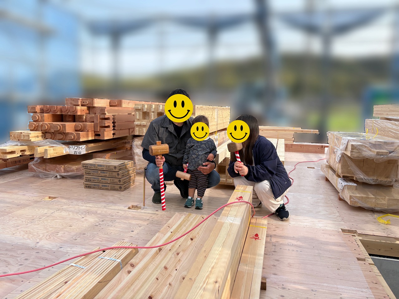 一日工事に入っていただく大工さんや現場監督と安全祈願をします。
