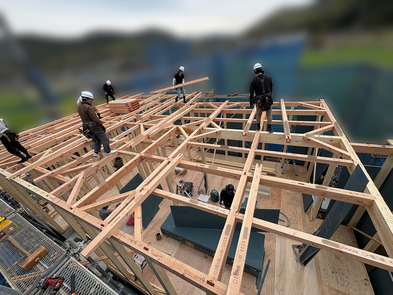 先日、東区西大寺にてT様邸の棟上げ工事を行いました!