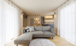 また、LDKには小上がりの和室を設け、くつろぎのスペースとしても活用できます。ナチュラルな木目とグレーを基調としたインテリアが、落ち着きのある心地よい空間をつくり出しています。